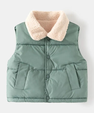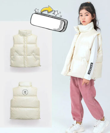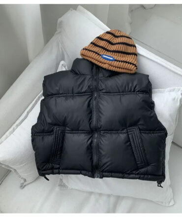 Kids Basic Solid Color Thickening Stand Neck Down Jacket Vest
