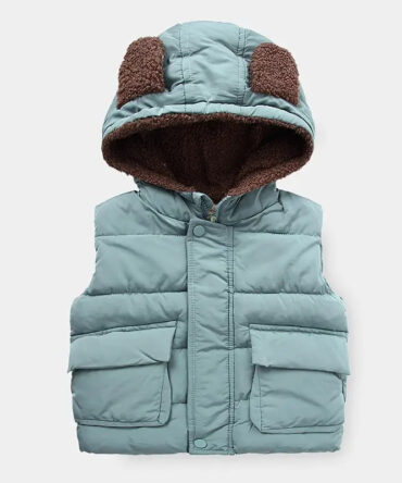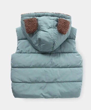 Kids Casual Cute Bear Ear Decor Zipper Design Pocket Sleeveless Quilted Jacket