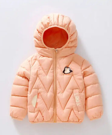 Kids Penguin Pattern Letter Printed Hooded Quilted Jacket