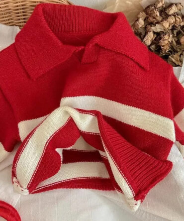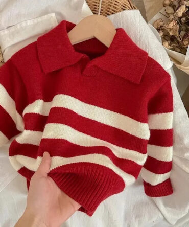 Fashion Casual Autumn And Winter Stripe Lapel Long-Sleeve Knitwear