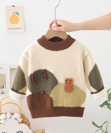 ashion Cartoon Winter Fleece-Lined Thickened Knitted Sweater