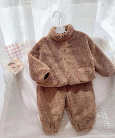 Winter Casual Cute Solid Color Plush Long Sleeve Coat Trousers Set