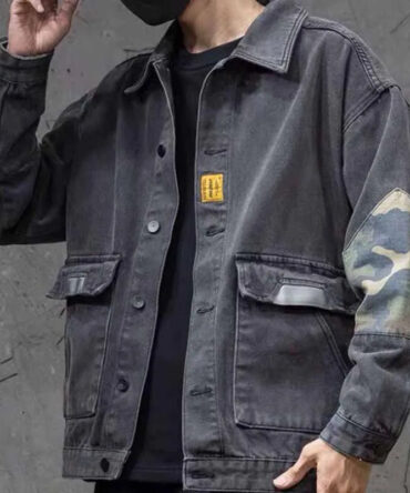 Men Fashion Casual Large Pocket Loose Camouflage Long Sleeve Lapel Denim Jacket