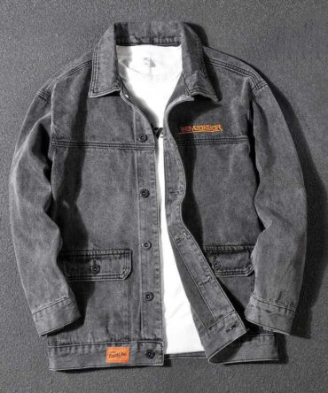Men Fashion Casual Plus Size Long Sleeve Lapel Black Denim Jacket