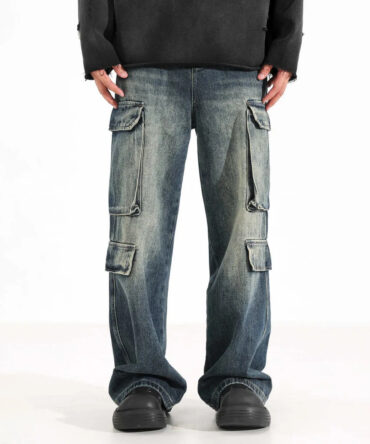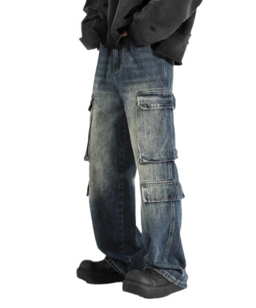Men Fashion Multi-Pocket Wide-Leg Loose Cargo Jeans