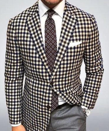 Men’S Fashion Single-Breasted Two-Button Plaid Suit