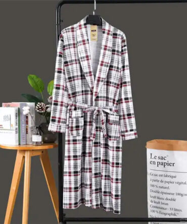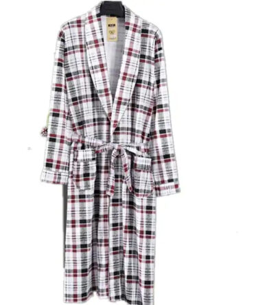 Men Fashion Plaid Printed Sash Comfortable Nightrobe
