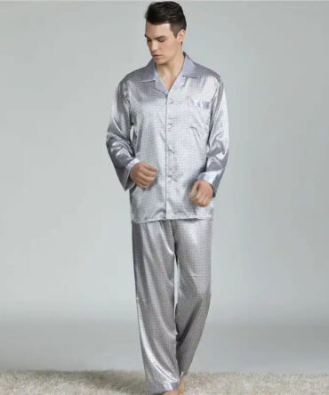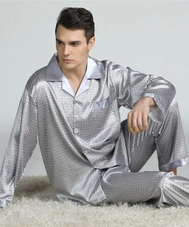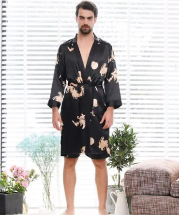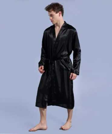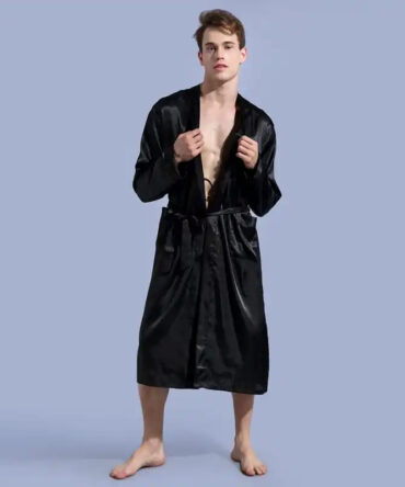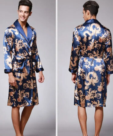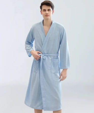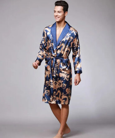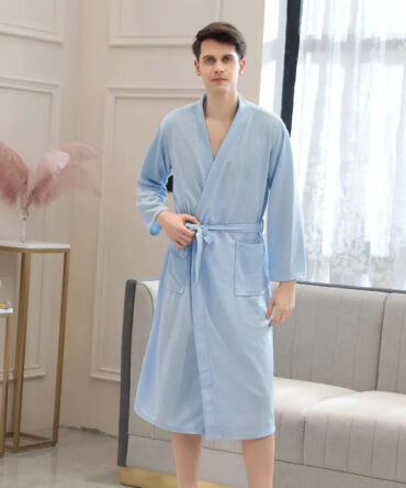 Men Fashion Casual Home Shatin Long Sleeve Robes Sleepwear