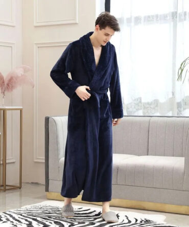 Men Winter Fashion Casual Home Solid Color Flannel Lapel Long Sleeve Robes Sleepwear