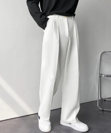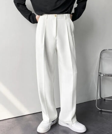 Men Casual Athleisure Side Single-Breasted Loose Straight Pants