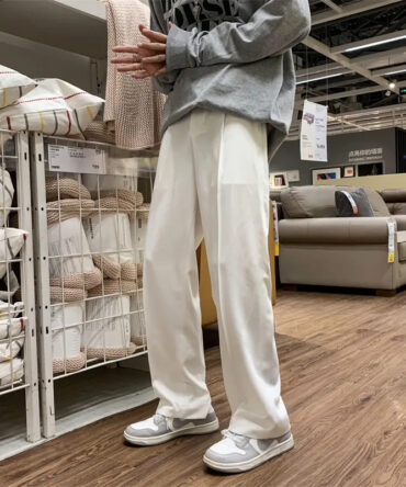 Men Casual Loose Thin Ice Silk Sports Wide-Leg Pants