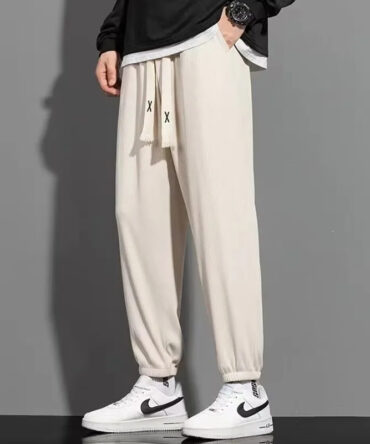Men Casual Loose Ice Silk Quick-Drying Drawstring Pants