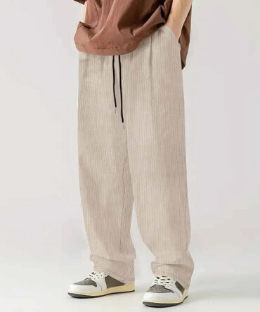 Men Casual Spring Autumn Basic Solid Color Corduroy Loose Straight Pants