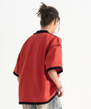 Men Fashion Casual Contrast Color Double Face Short Sleeve Loose T-Shirt