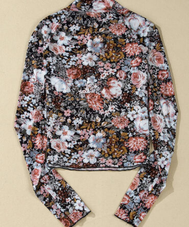 Brown Floral Long Sleeve High Neck Sheath Mesh Blouse