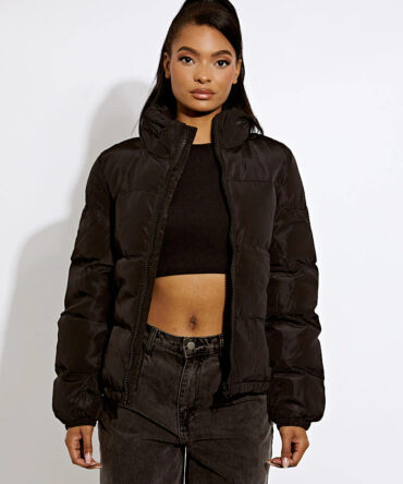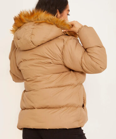 Padded Puffer Jacket With Faux Fur Hood Trim