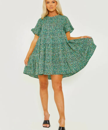 Ditsy Floral Print Frill Tiered Smock Dress