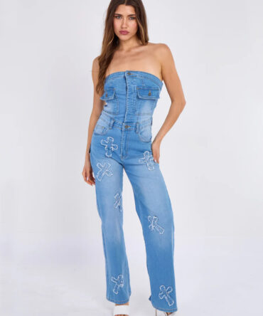 Cross Patch Bandeau Denim Jumpsuit
