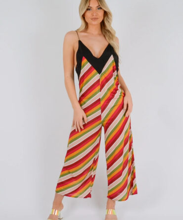 Multi Colours Halter Neck Open Back Slinky Jumpsuit