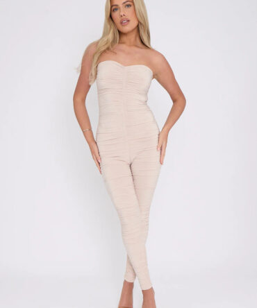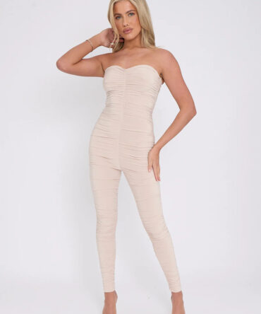 Slinky Ruched Bodycon Fit Bandeau Jumpsuit