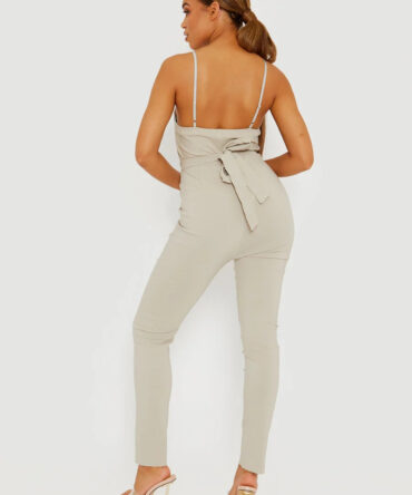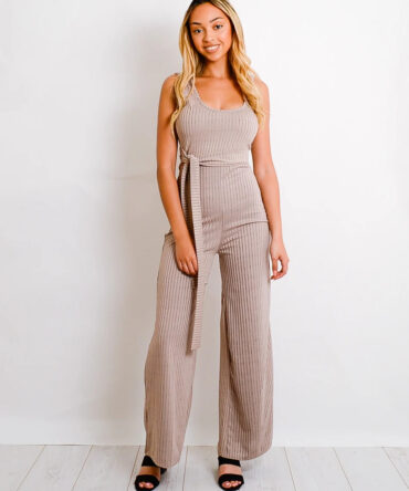 Zip Back Tie Knot Ribbed Jumpsuit
