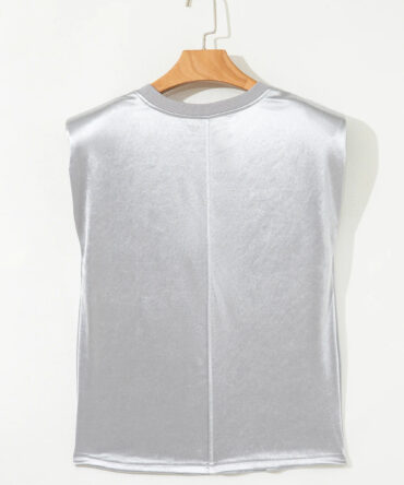 Silvery Metallic Luster Crew Neck Shift Tank Top