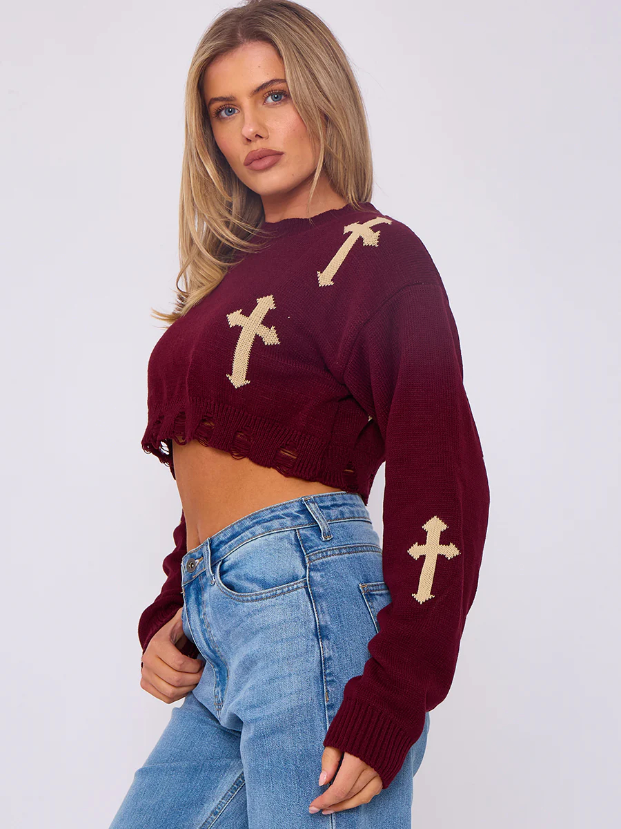 Be the first to review “Crucifix Detail Knitted Cropped Jumper”