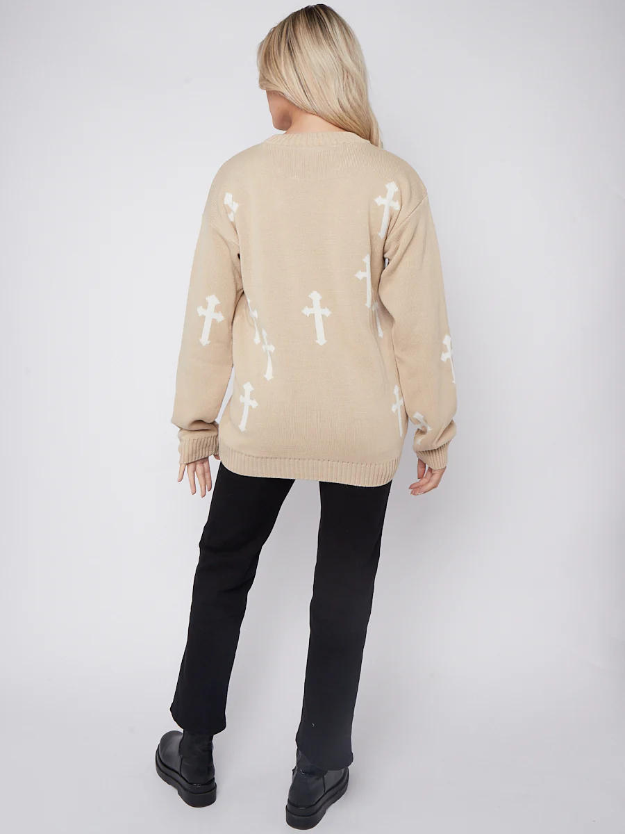 Crucifix Detail Oversized Knitted Jumper