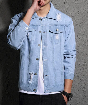 Men’S Casual Fashion Ripped Denim Jacket Outerwear