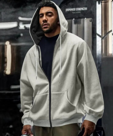 Men Fashion Casual Autumn And Winter Solid Color Waterproof Zipper Long-Sleeve Hoodies