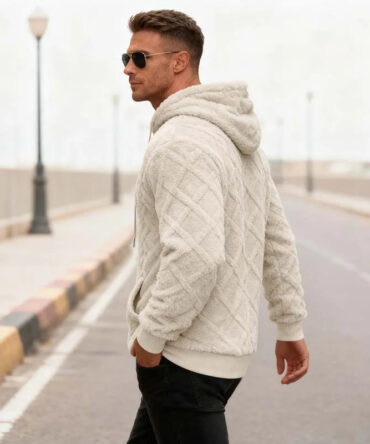 Men Fall Winter Solid Color Rib-Knit Fleece Long Sleeve Hoodies