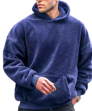 Men Fall Winter Fashion Casual Solid Color Fleeces Long Sleeve Sports Hoodies