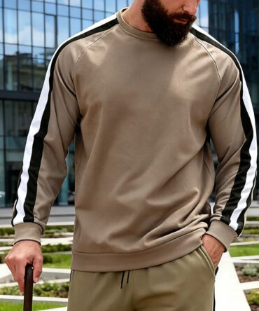 Men Spring Autumn Casual Stripe Round Neck Long Sleeve Sweatshirts
