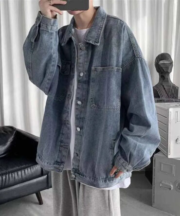 Men Spring Autumn Fashion Casual Versatile Plus Size Long Sleeve Lapel Denim Jacket