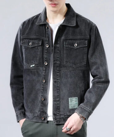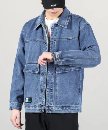 Men Spring Autumn Fashion Casual Versatile Plus Size Long Sleeve Lapel Denim Jacket